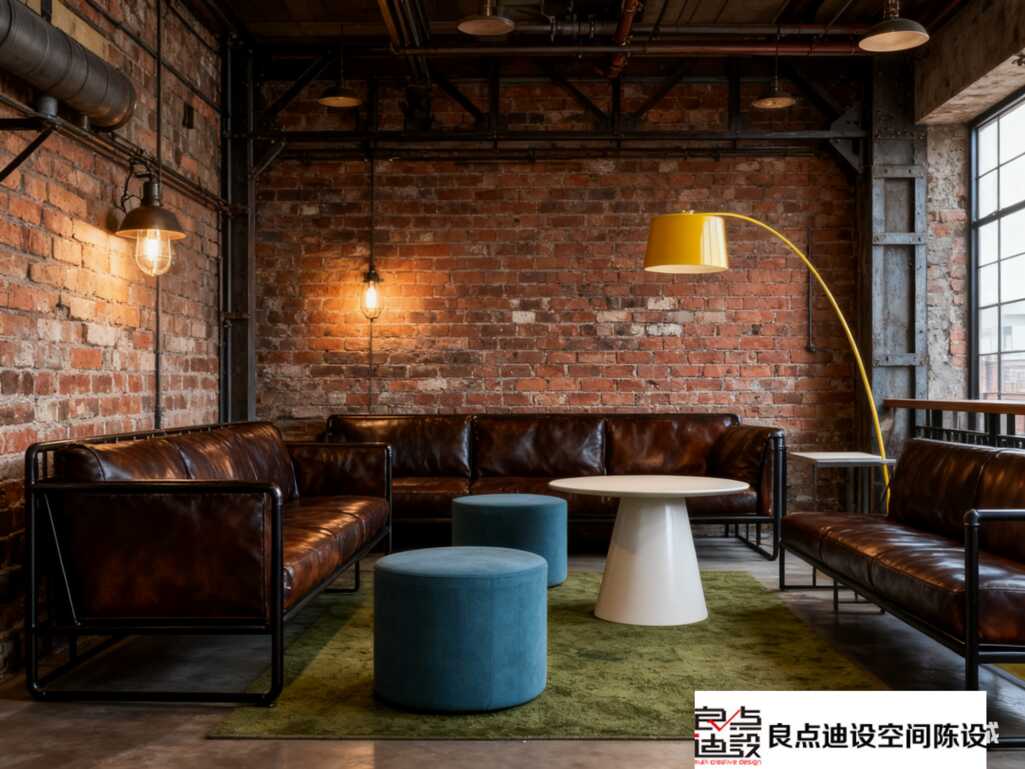 ?? 1. 軟裝C位搭配:金屬+皮革+木紋YYDS! * 金屬元素: 別只盯著水管燈!* 皮質沙發/單椅: 休息區、老板椅安排上!棕色、墨綠皮質是工業風的靈魂伴侶,一擺進去,復古摩登那味兒就有了!磨砂皮更顯高級。 * 溫潤木紋中和: 工業風太硬?原木色桌面、開放木格書架了解一下!淺木色能瞬間注入自然暖意,平衡水泥灰的清冷感。 選有做舊紋理的,別整太光滑!
