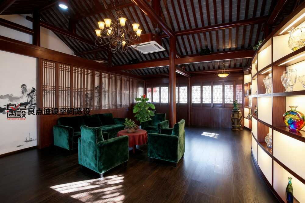 誰說傳統茶樓只能走中式復古風?這家空間直接讓東方古韻和輕奢摩登來了場***碰撞。坡屋頂下掛水晶燈,深色絨面沙發配金邊線條,大理石墻面就像流動的水墨畫。你發現沒?綠植和木質格柵窗讓整個空間活了起來。