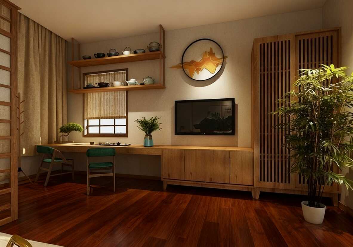 一推開民宿的門,滿屋子的木質調直接把氛圍感拉滿!淺木色地板溫柔得像踩在云端,中間的隔斷柜既是收納又是視覺焦點,開放式格子里擺著小魚缸、藝術擺件,還有幾盆小綠植點綴,活生生把 “自然角落” 搬進了室內。